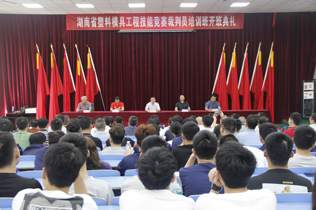 6月14日,由省人力资源和社会保障厅主办的全省塑料模具工程技能竞赛裁判员培训班开班仪式在继志楼阶梯教室举行,仪式由副院长皮步安主持。院长陈洪星、市人社局职业技能鉴定中心主任王付银、世界技能大赛中国技术指导专家组成员李明、世界技能大赛全国选拔赛裁判廉良冲、参培学员以及省人社厅、市人社局相关领导参加开班典礼。