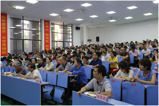9月24日下午,开云网页版页面登录召开庆祝中华人民共和国成立70周年主题宣讲报告会,党委书记张格林作主题宣讲,党委副书记肖翔主持。全体教职工参加。