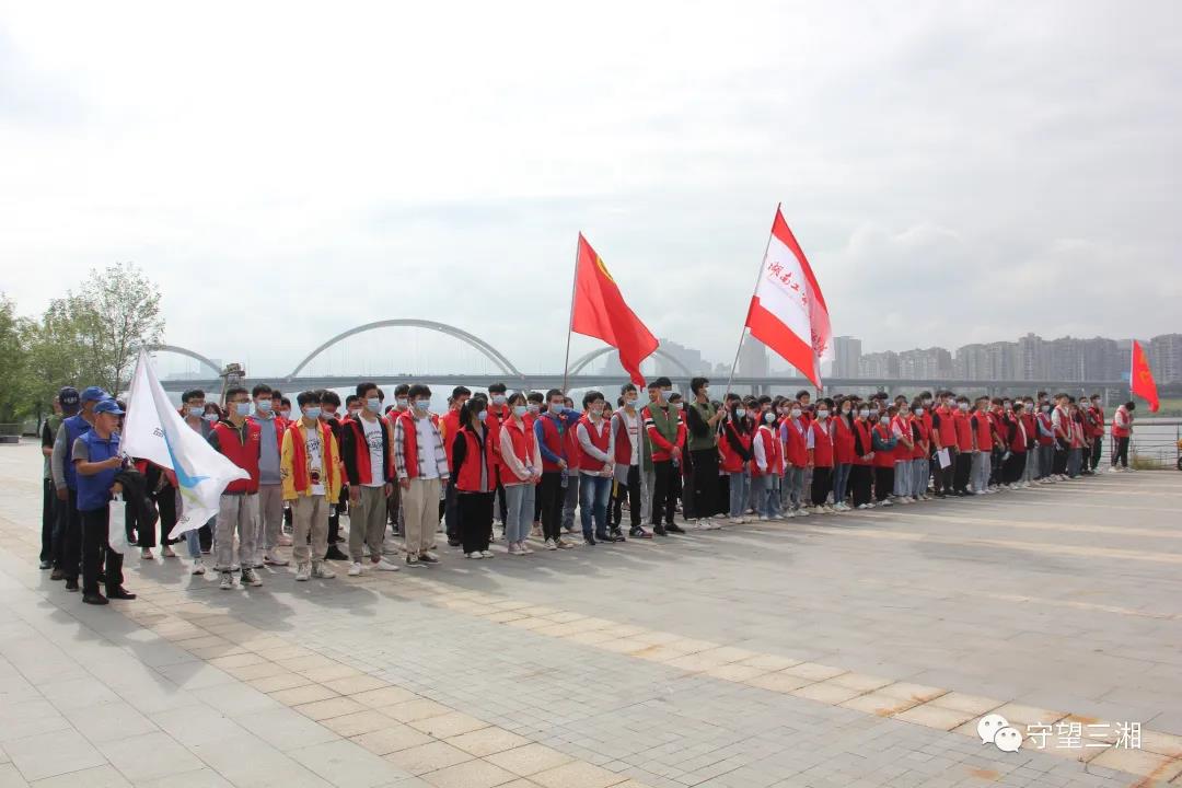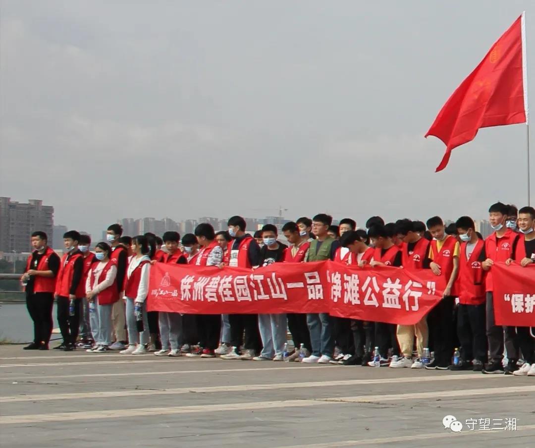 上午9.30分株洲市益湘水生态环境保护协会和株洲市水利局、石峰区河长办、石峰区城管局组织本协会、株洲碧桂园“江山一品”、以及湖南省工贸技师开云网页版页面登录的180名志愿者在石峰区下河街举行了净滩行动启动仪式。