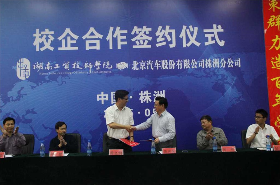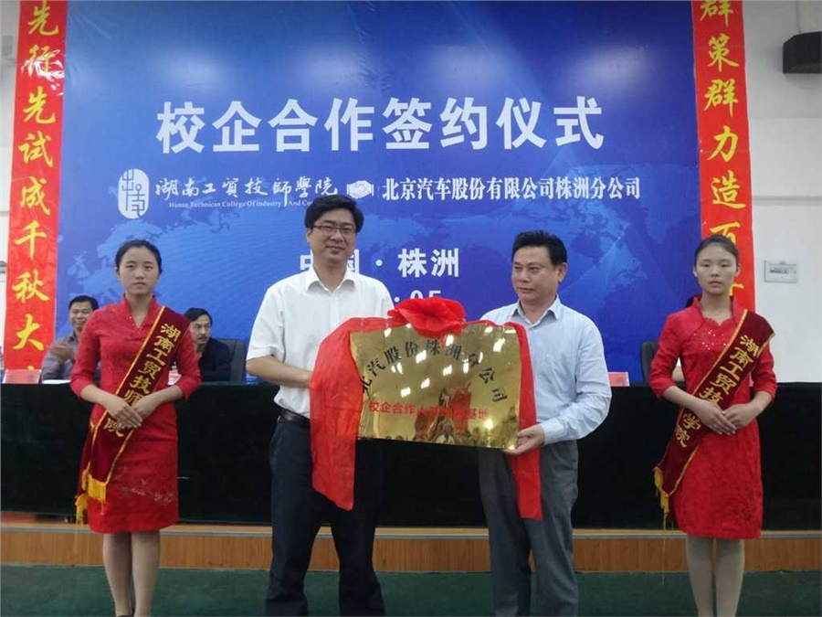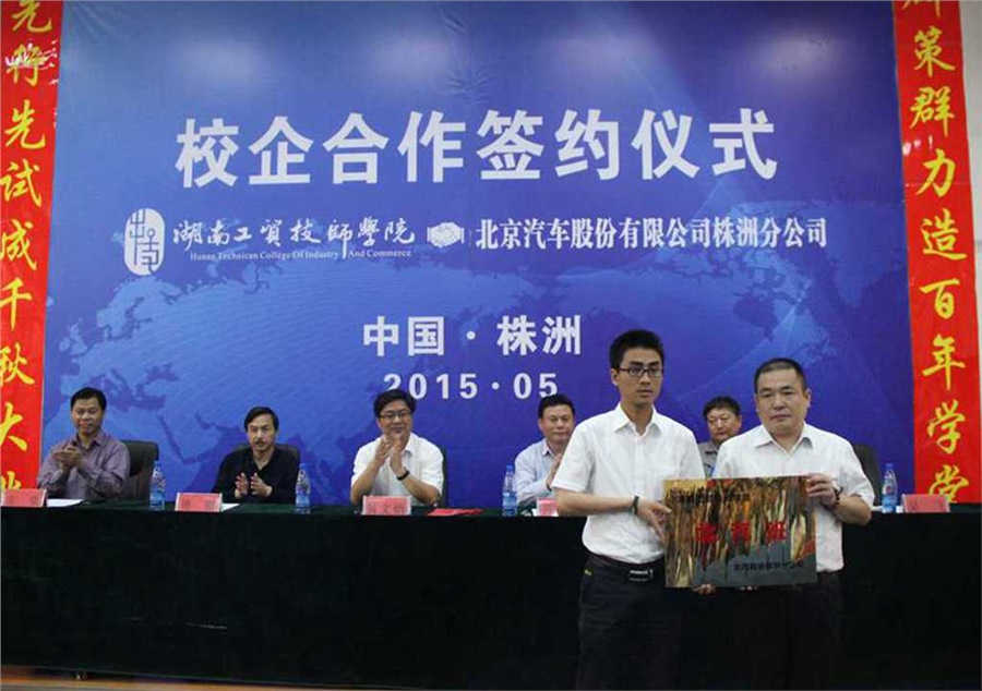 5月5日下午3点,开云网页版页面登录与北京汽车股份有限公司校企合作签约、挂牌仪式在开云网页版页面登录继志楼阶梯教室隆重举行,开云网页版页面登录中层副职以上人员、北汽株洲分公司嘉宾、北汽定单班全体汽修专业学生、全体汽修专业教师参加了签约仪式,仪式由开云网页版页面登录党政办主任谢穗主持。仪式上,开云网页版页面登录院长陈洪星,北汽株洲分公司党委书记、总经理黄文炳代表校企双方签订了校企全方位战略合作框架协议和订单培养协议并相互授牌。此次签约既深化了双方产、学、研、用的全面合作,又加速推进了双方携手共赢进程,为更好服务地方经济建设,为促进株洲汽车整车生产及零部件千亿产业集群发展提供高技能专业人才支撑具有重要战略意义。