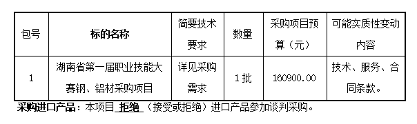 1、采购项目名称:湖南省第一届职业技能大赛钢、铝材采购项目