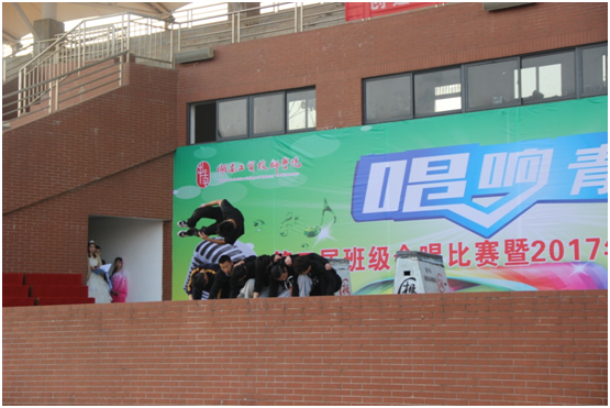 活动在院团委吉他社的开场乐队演奏中开始,一首欧美范十足的《Price Tag》为比赛和汇演拉开了序幕。合唱比赛共有8个班级参加,分为中技组和高技组,参赛班级均为各系部初赛第一名班级,当《强军战歌》、《国家》、《精忠报国》、《四渡赤水出奇兵》等经典歌曲依次唱响时,整个比赛进入高潮。最后,整台演出在经贸物流系的文明礼仪类舞蹈节目《绽放》中圆满落下帷幕。这次比赛和汇演丰富了师生校园生活,促进了学生个性化发展,极大地激发了师生们的爱国主义情感和团结协作精神。