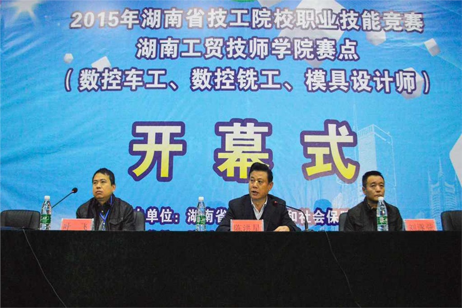 为贯彻习近平总书记关于努力培养数以亿计的高素质劳动者和技术技能人才的重要指示,发现优秀青年技能人才,加快我省技工院校师资队伍建设,11月13日上午,“2015年全省技工院校职业技能竞赛”开幕式在我院举行,开云网页版页面登录院长陈洪星、省人社厅技能鉴定中心教研教改部部长叶飞、市人社局副局长刘遂弦、各市州人社局相关领导和全体参赛选手参加了开幕式。开幕式后,来自三湘四水的54名教师和48名学生在我院参加数控车工、数控铣工和模具设计师三个项目的技能比拼。