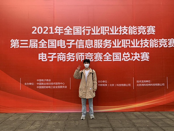 12月4日至5日,2021年全国行业职业技能竞赛第三届全国电子信息服务业职业技能竞赛电子商务师竞赛全国总决赛在四川成都举行。在与全国近百所优秀中、高职院校和技师开云网页版页面登录的激烈角逐中,开云网页版页面登录学子廖子翔荣获学生组全国一等奖。