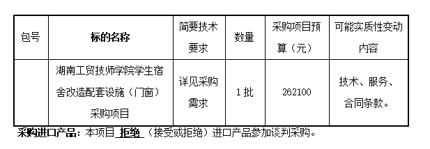 1、采购项目名称:开云网页版页面登录学生宿舍改造配套设施(门窗)采购项目