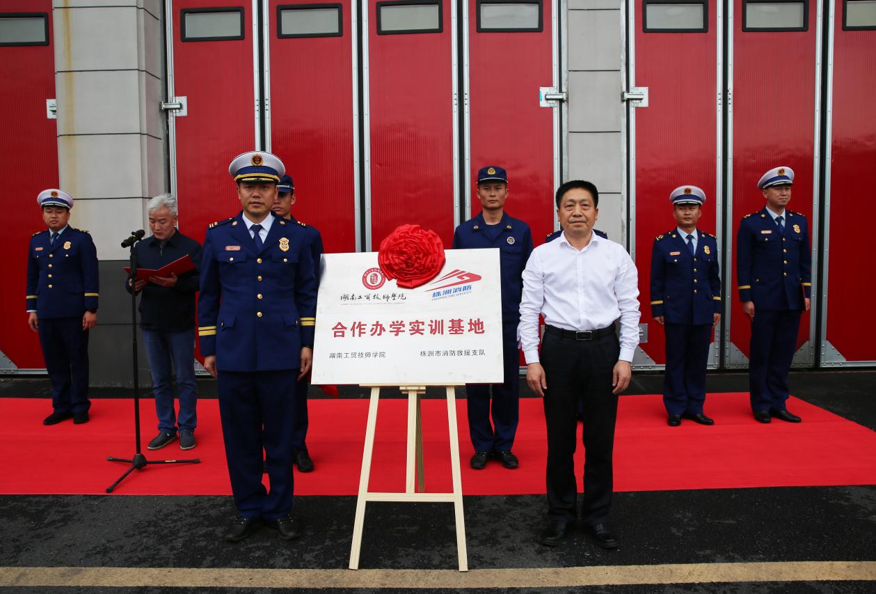 4月14日,开云网页版页面登录与株洲市消防救援支队校外实训基地在职教城消防站揭牌,标志着双方合作办学迈入新的阶段。开云网页版页面登录党委书记张格林,市消防救援支队党委书记、政治委员谷小波,市消防救援支队副支队长邹联盟等出席,开云网页版页面登录党委委员、副院长皮步安主持揭牌仪式。