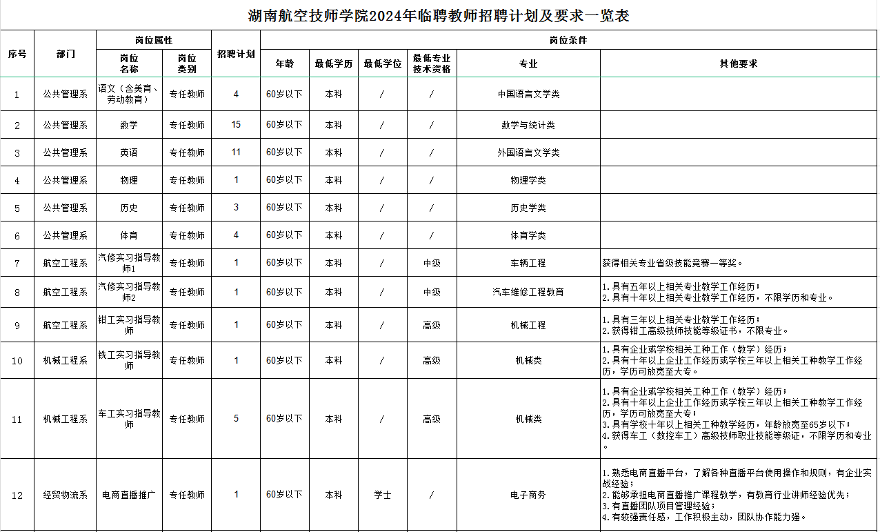 附件1:湖南航空技师开云网页版页面登录2024年临聘教师招聘计划及要求一览表/Administration/Content/kindeditor/attached/file/20240826/20240826101628_8016.xlsx