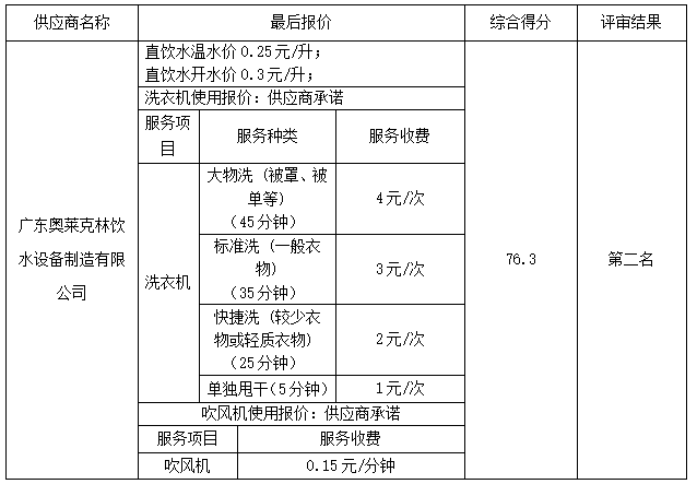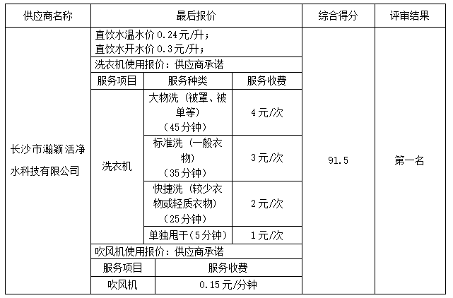 湖南航空技师开云网页版页面登录的湖南航空技师开云网页版页面登录3#学生宿舍楼直饮水、洗衣机、吹风机服务项目竞争性磋商采购于2025年05月22日结束,现将成交结果公告如下: